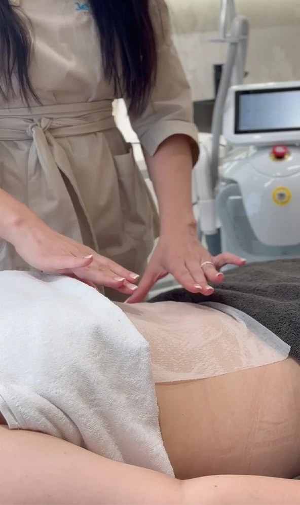 Уже после первых сеансов заметно уменьшение объема в обработанных зонах и улучшение контуров тела.