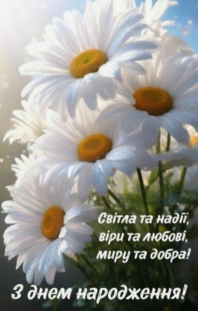 Ромашки викликають асоціації з теплом, світлом, дитинством, щирістю й природною красою. Саме тому листівки з ромашками з днем народження часто обирають для привітань близьким. Ці квіткові зображення додають побажанням легкості, доброзичливості й душевності, навіть, коли слів небагато, але є бажання зробити приємне.