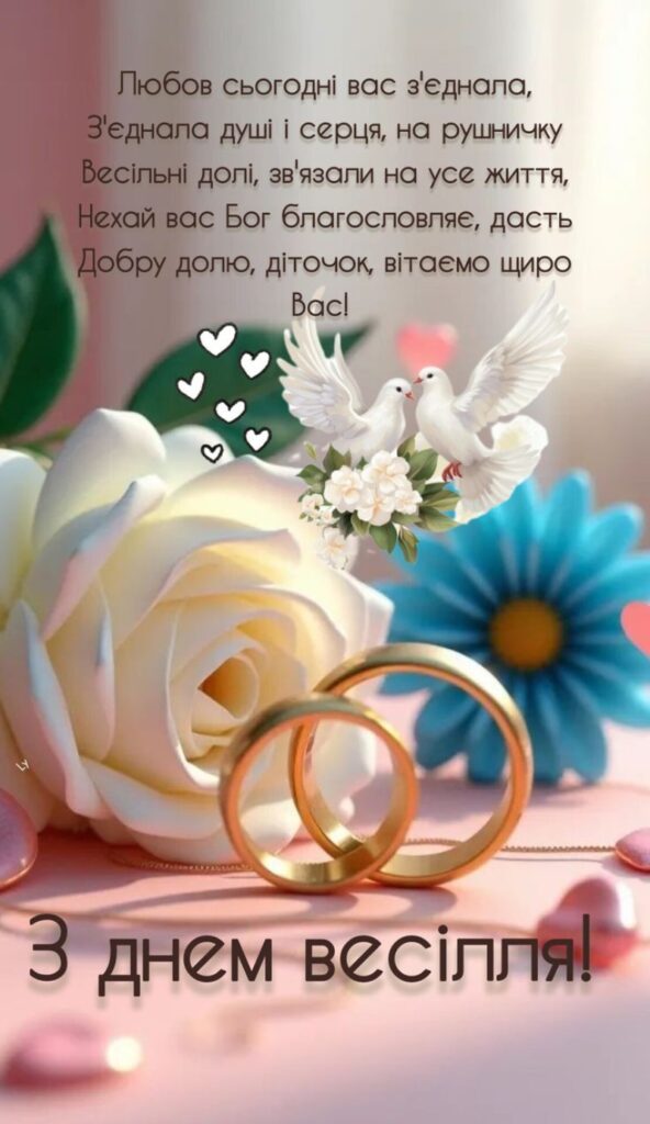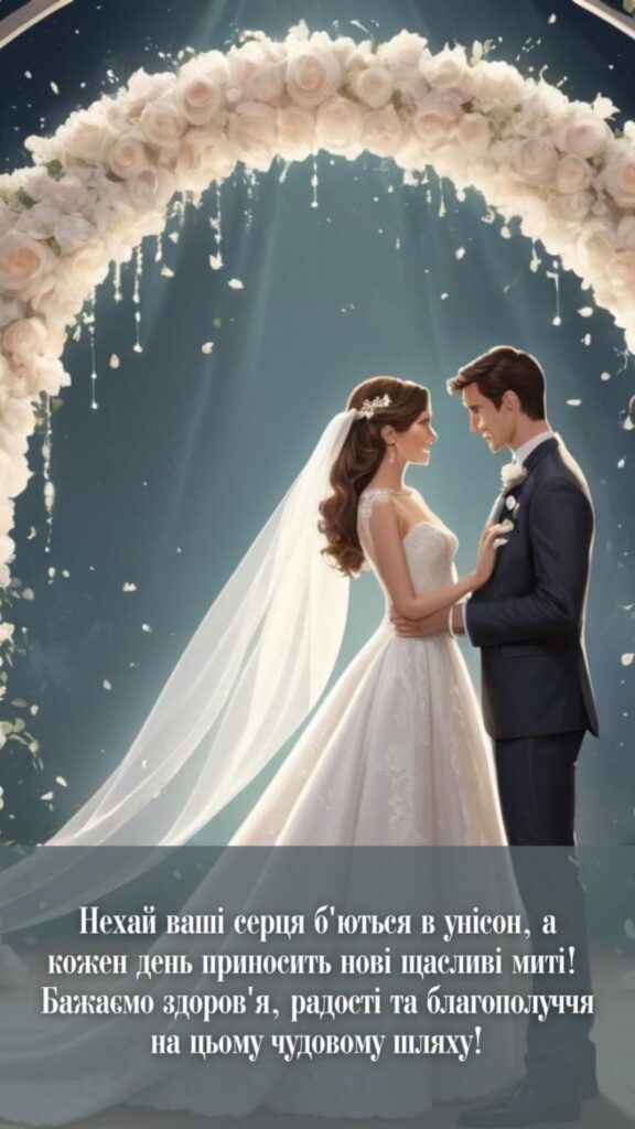 Привітання можуть звучати по-різному: у віршах, прозі чи навіть з жартом. Вибір залежить від того, наскільки близькі стосунки з молодятами і який настрій хочеться створити в цей день.