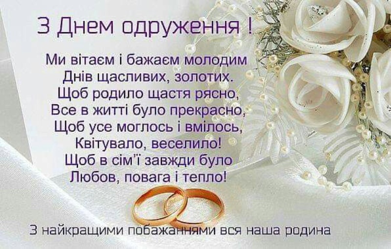 Сьогодні починається нова історія, і ви пишете її вдвох. Хай у кожному розділі буде багато радості й тепла. Бажаю вам ніколи не втомлюватися від спільних днів.