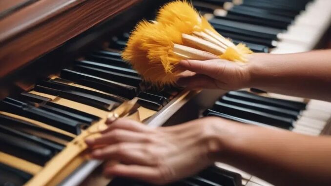 Клавиатура — самая чувствительная часть пианино. При чистке недопустимо использование спиртовых растворов, бытовых очистителей или влажных салфеток: они способны повредить покрытие и испортить отклик. Рекомендуется применять сухую микрофибру, а при необходимости слегка увлажненную дистиллированной водой ткань. Пыль на корпусе стоит убирать регулярно, иначе она оседает между клавишами и проникает внутрь механизма. Для глянцевых поверхностей подойдут специальные антистатические полироли. Храните инструмент с закрытой крышкой и избегайте частого контакта с влажными руками — это продлит срок службы клавиш и сохранит их белизну.