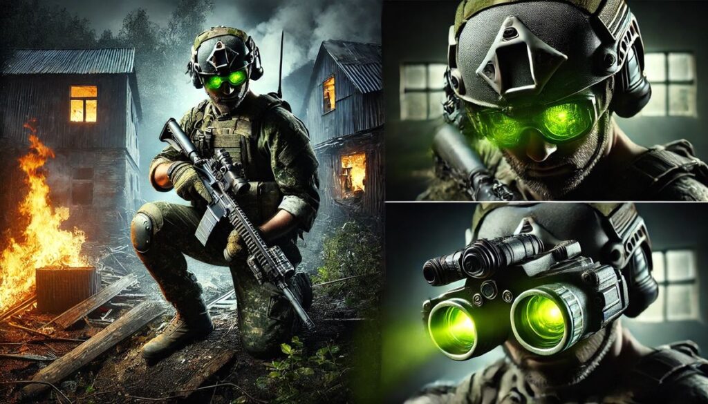 - PVS-7: бинокулярное устройство, подходящее для использования на шлеме или в руках, идеально для тактических операций.