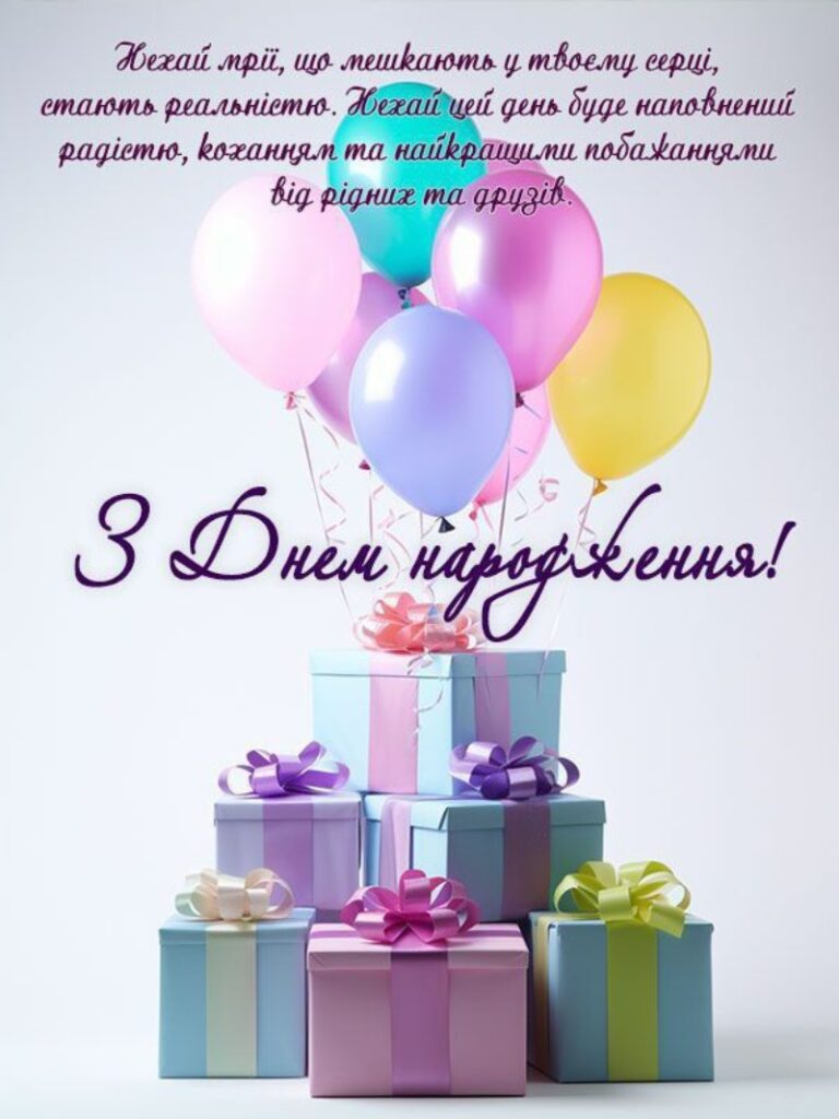 З днем народження! Нехай усмішка з’являється без причини, а щастя не потребує пояснень. Хай у твоїх буднях завжди буде трохи свята.