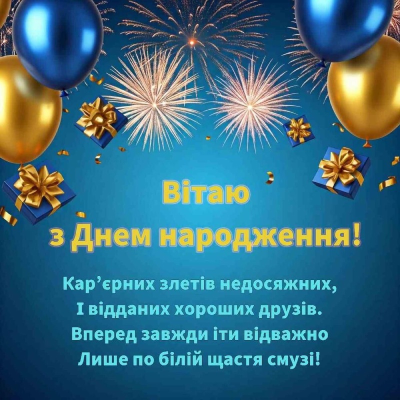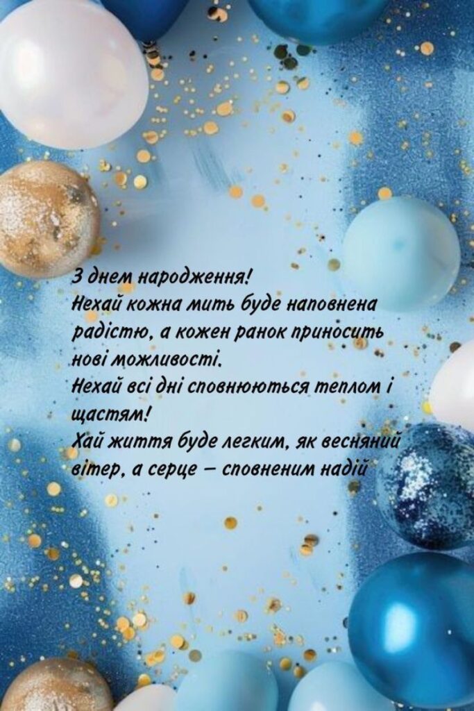 Хай життя щедро ділиться приємними подіями. Бажаю, щоб кожна справа приносила задоволення, а кожен день – привід для вдячності. Залишайся собою, бо саме це найцінніше.