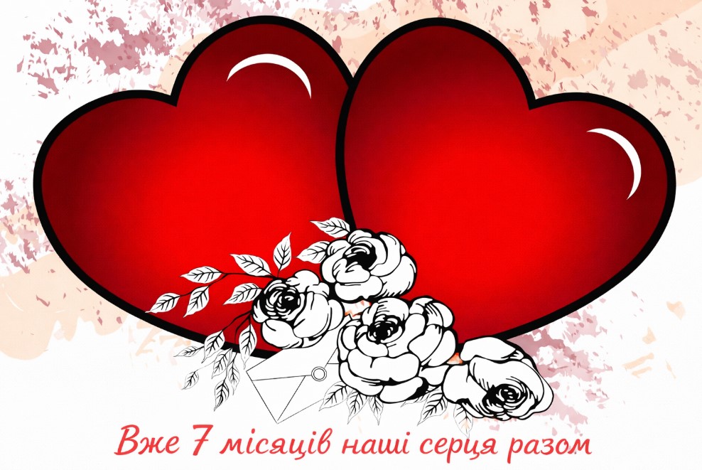Вітаю з нашими сімома місяцями, які стали точкою змін. Ти навчила мене бачити деталі, яких я раніше уникав. Твоя чесність допомогла мені зняти напругу, що заважала говорити відверто. Ти робиш стосунки простими без втрати глибини. Я ціную кожен день, який ми створили разом.