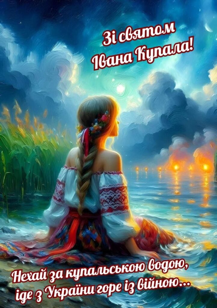 Нехай у день Купала серце твоє буде спокійним, як тиха вода, і сильним, як вогонь, що горить біля річки. Бажаю відчути єдність із природою та людьми, які дорогі тобі. Хай ця мить подарує впевненість у завтрашньому дні.