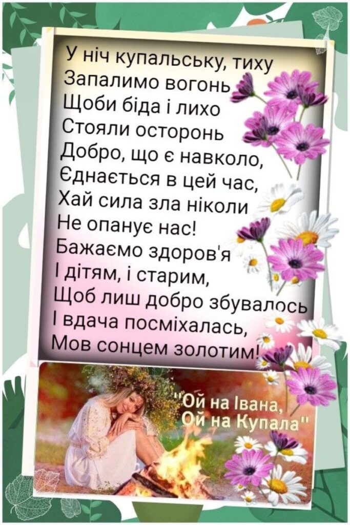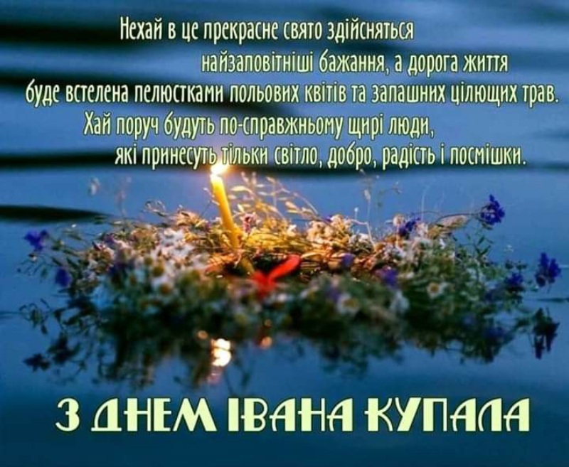 Сьогодні свято, коли люди вірять у силу природи та магію води. Хай у твоєму житті буде стільки ж світла, скільки від купальського вогнища. Нехай щодня ти знаходиш привід усміхнутися й подякувати за те, що маєш.