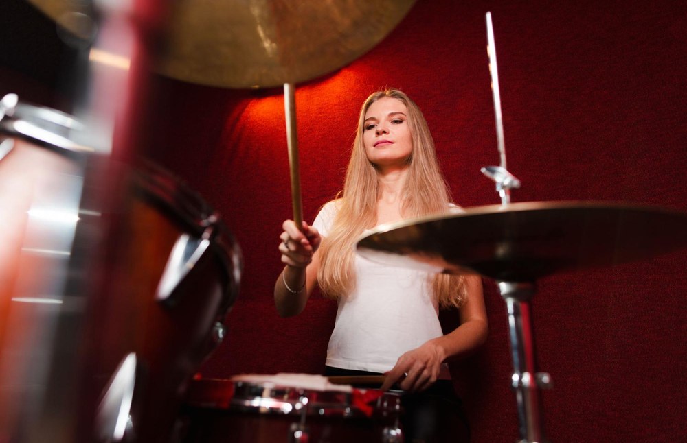 - Барабани або електронна ударна установка – чудовий вибір для розвитку ритму, особливо коли є обмежений простір та потреба в низькому рівні шуму.