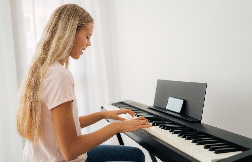 - Клавішні (синтезатор або піаніно) – дозволяють розвивати слух, гармонію, розуміння нотної грамоти.